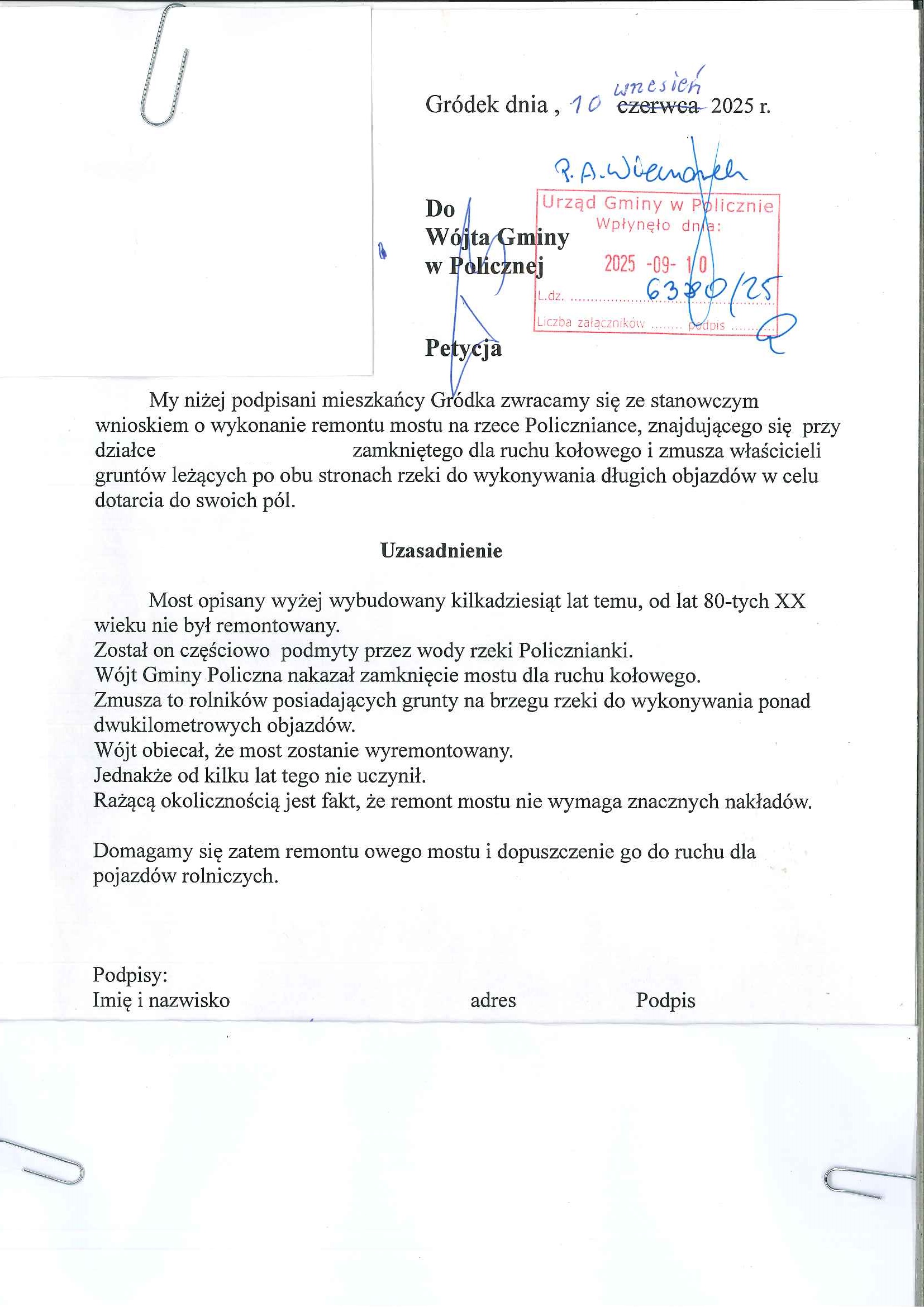 Petycja z dnia 11.09.2025r